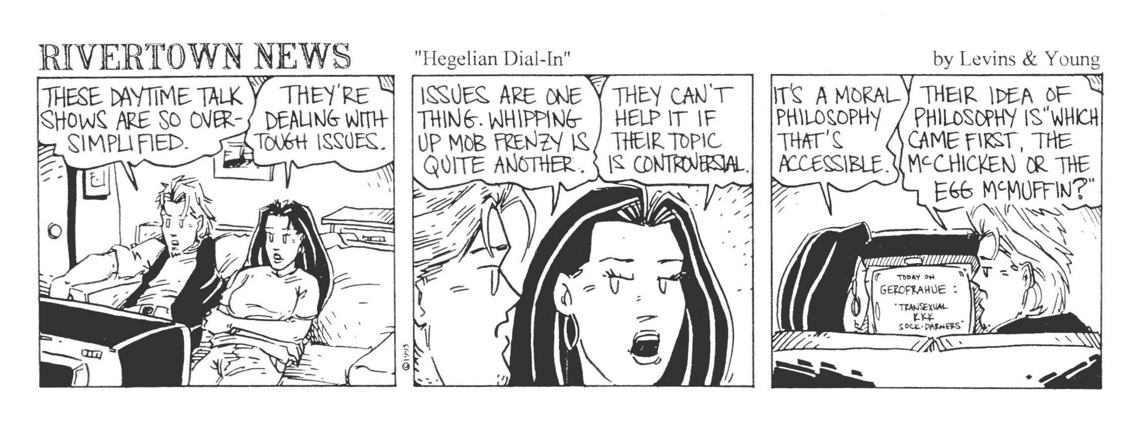 As today marks the last Sunday of our Rivertown News run, we thought a formal thank-you was in order for our volunteer colorist. As previously mentioned, we didn’t do any official Sunday RN strips. But we thought it would be fun to add some color to a few regular strips to post on Sundays.